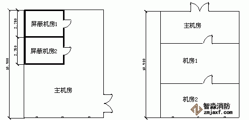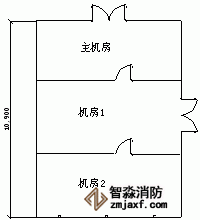 如上圖所述,兩個屏蔽機房被套裝在主機房內(nèi)。滅火分區(qū)劃分出現(xiàn)兩種不同意見,一種意見是將三個房間劃成一個區(qū)域采用全淹沒單元獨立系統(tǒng)進行滅火,也就是說三個區(qū)域中任何一個發(fā)生火災(zāi)時三個房間同時發(fā)出警報并同時噴放藥劑;另外一種意見是將這三個房間當成三個獨立的防火分區(qū),采用一套組合分配全淹沒滅火系統(tǒng),任何一個房間發(fā)生火災(zāi)時三個房間同時報警,但系統(tǒng)只向發(fā)生火災(zāi)的區(qū)域噴放滅火藥劑。前者意見使用藥劑量要大于后者,三個房間實際被當作一個獨立的滅火區(qū)對待,基本無太多異議,但投資相對后者要高;后者情況需要我們模擬火災(zāi)現(xiàn)場后再定,若機房1著火,全部房間報警,人員全部撤離,藥劑只輸送到機房1,若主機房發(fā)生火災(zāi),全部房間報警,人員全部撤離,藥劑只輸送到主機房,基本無任何危險情況發(fā)生,警報區(qū)域和范圍依照《火災(zāi)自動報警系統(tǒng)設(shè)計規(guī)范》4.2.1.1化為一個報警區(qū)域,滅火區(qū)域劃分為三個獨立的保護區(qū),并按照氣體保護區(qū)要求設(shè)置外開門及圍護結(jié)構(gòu)。所以后者方案從使用和投資方面講更合理。