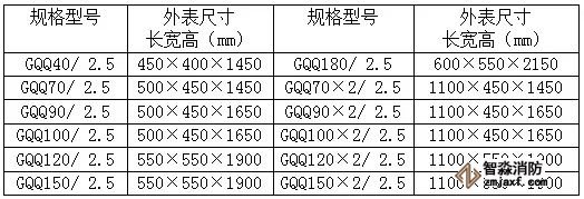 2、無管網(wǎng)柜式系統(tǒng)鋼瓶、柜身參數(shù)