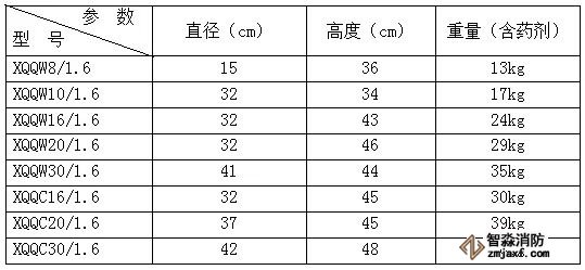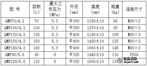 七氟丙烷氣體自動滅火系統(tǒng)分為有管網(wǎng)、無管網(wǎng)(柜式和懸掛)系統(tǒng),它們的儲瓶容器參數(shù)如下: